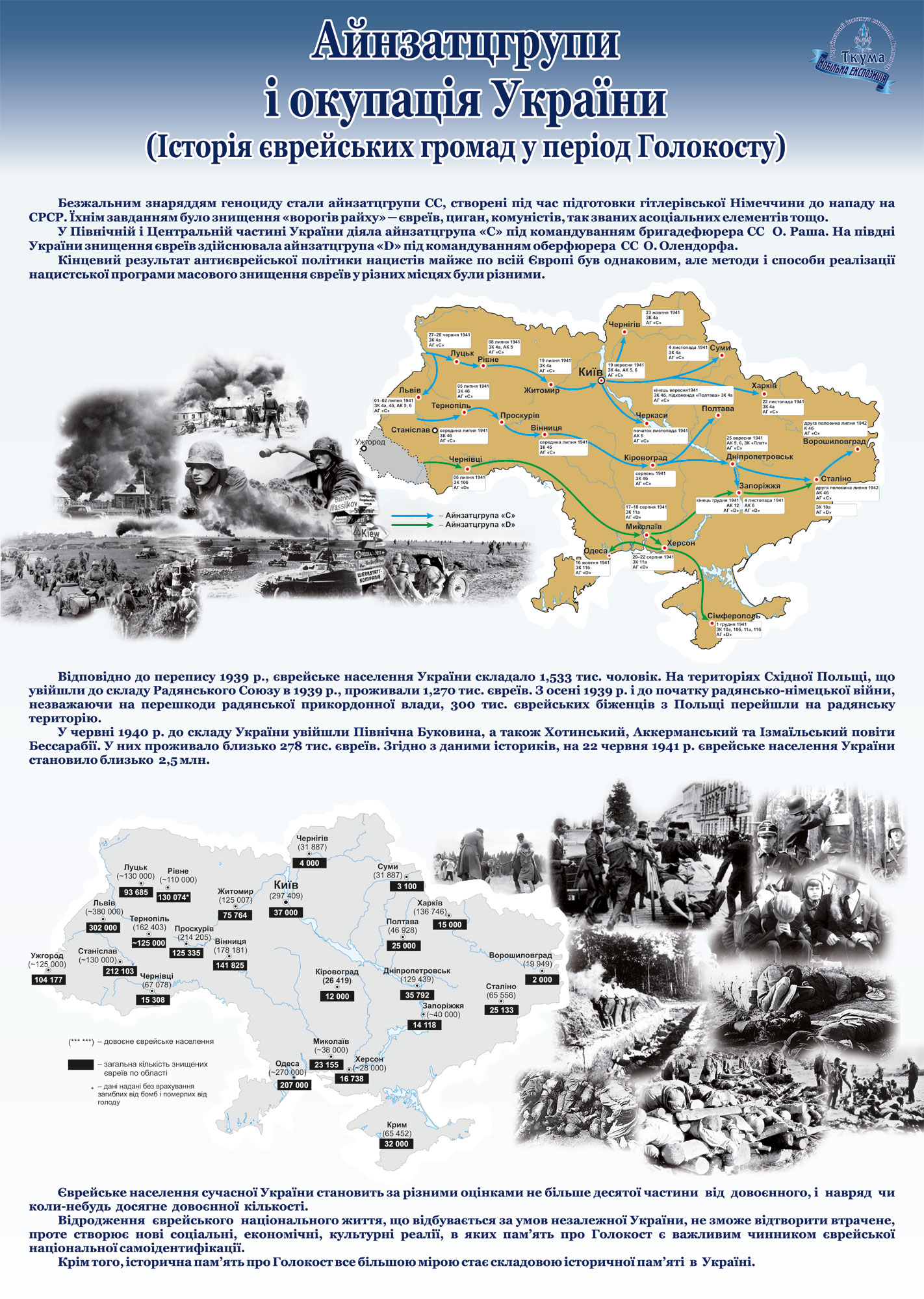 За цими посиланнями ви зможете завантажити для ознайомлення плакати мобільних освітніх виставок Українського інституту вивчення Голокосту "Ткума".